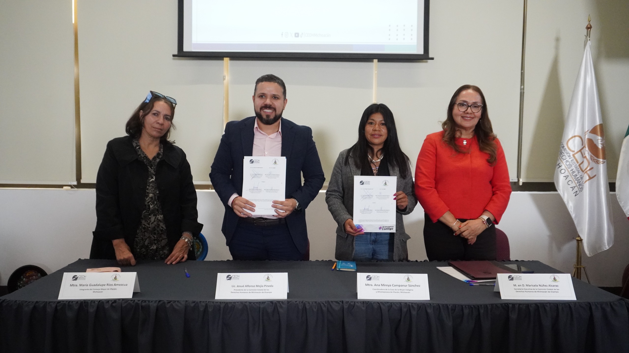 El defensor del pueblo, Josué Mejía, anunció la nueva representación regional al firmar un convenio de colaboración con la Casa de la Mujer Indígena y Afromexicana de Cherán para impulsar acciones de prevención de la violencia y promoción de los derechos sexuales y reproductivos.
